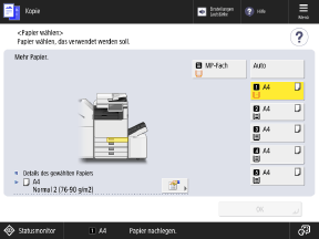 Geben Sie die Papierzufuhr an, in die das angezeigte Papier eingelegt ist, und drücken Sie [OK].
