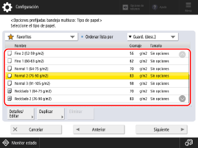 Especificación del tamaño y tipo de papel para la bandeja multiusoSi hay varias configuraciones de papel de uso frecuente