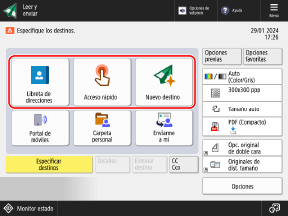 Puede pulsar [Opciones previas] para recuperar las opciones utilizadas para enviar datos escaneados anteriormente. También se aplica el destino de envío junto con la configuración recuperada.