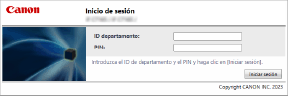 Cuando la gestión de ID de departamentos esté activada, será necesario introducir el ID de departamento y el PIN para iniciar sesión al utilizar el panel de control o la IU remota.