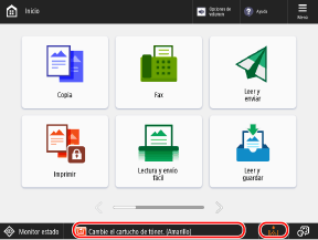 Monitor de estado] y compruebe las opciones de papel en [Consumibl./Otros].