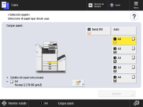 Realice las operaciones descritas a continuación según el papel a utilizar, y reanude la impresión o la copia.