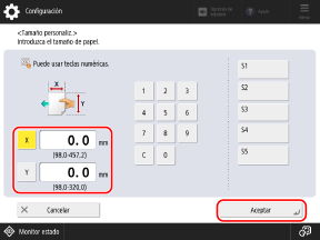 Si se registran tamaños no estándar de uso frecuente, puede recuperarlos pulsando de [S1] a [S5].