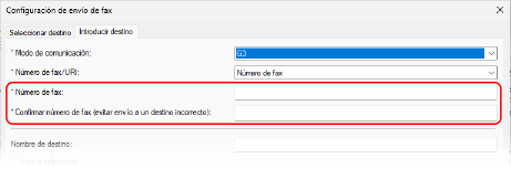 Introduzca el mismo número de fax en [Confirmar número de fax] si se puede introducir un valor.