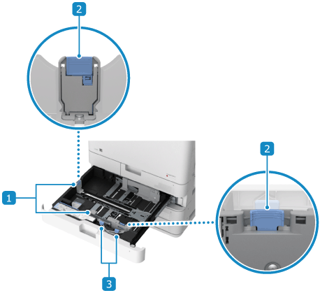 Mueva las guías de papel mientras sujeta la palanca de desbloqueo.