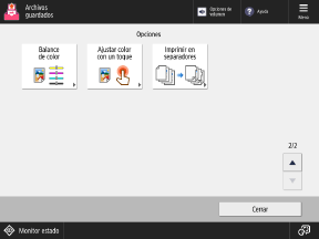 Pulse los botones de esta pantalla para configurar las opciones de impresión detalladas. Tras configurar las opciones de impresión, pulse [Cerrar] para volver a la pantalla de opciones de impresión.