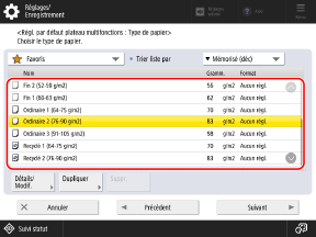 Régler le format et le type de papier pour le plateau multifonctionsLorsqu'il y a plusieurs réglages de papiers fréquemment utilisés