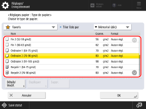 * Si le type du papier chargé n'est pas affiché dans la liste, enregistrez le type du papier.