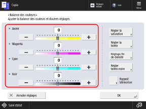 Écran de copieL'écran [Ajuster Régl. couleur] s'affiche.