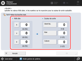 Appuyez sur [Assigner valeurs RVB aux couleurs sortie dans nuancier].