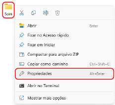Clique com o botão direito na pasta criada e clique em [Propriedades].