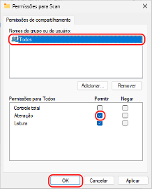 Para [Usuários], selecione [Todos] [Leitura e Gravação].