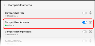 Ative [Compartilhar Arquivos] e clique em [].
