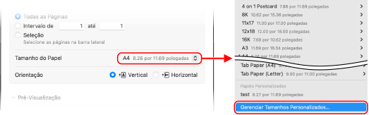 Para [Paper Size], selecione [Manage Custom Sizes].
