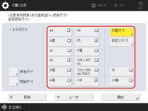 此外,还可以将在多功能托盘中装入纸张时显示的屏幕设置为选择常用纸张的屏幕,以便快速设置纸张尺寸和类型。