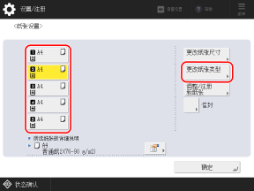 选择要更改其设置的纸盒,然后按下 [更改纸张类型]。