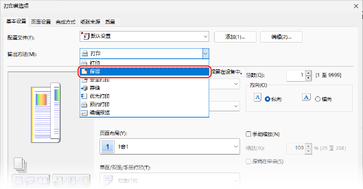 可以在驱动程序的打印设置中设置“保留队列”功能,并将要保留的文档发送到机器。