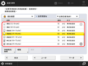 如需顯示用於選擇「常用紙張」的畫面,請按下 [多用途紙盤預設值]