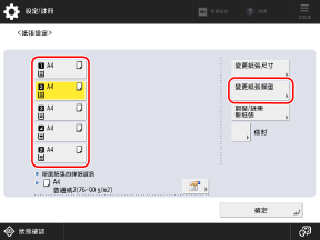 如果未自動偵測已裝入紙張的尺寸,請按下 [變更紙張尺寸]
