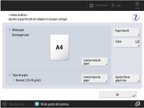 La màquina reconeix el gramatge base i l'acabat del paper carregat a la safata multiús i defineix de manera automàtica el tipus de paper més semblant entre els que ja estan registrats a la màquina.