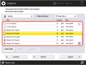 * Si el tipus de paper carregat no es mostra a la llista, registreu-lo.
