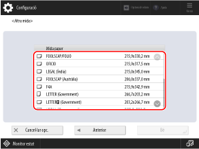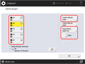 Si s'ha carregat paper d'una mida que no es detecta automàticament, premeu [Canviar mida de paper]