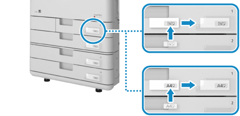 Col·loqueu etiquetes amb la mida del paper als fulls de suport per tal que us sigui més fàcil veure el tipus de paper que heu carregat als diferents calaixos de paper. Per col·locar la nova etiqueta de mida de paper, seguiu el procediment següent: