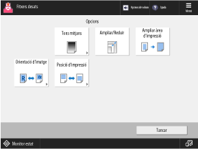 * Segons la configuració, la referència per a la descripció aquí és la descripció en copiar. Substituïu "copiar" per "imprimir" quan us hi referiu. La descripció també pot incloure paràmetres que no es poden configurar per imprimir.