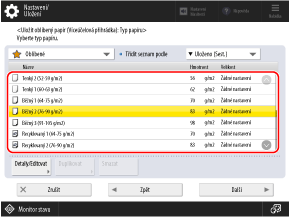 Zaregistrováním informací (velikosti a typu) často používaného papíru jako oblíbený papír můžete tyto informace vyvolat na obrazovce nastavení papíru, abyste mohli rychleji nastavit velikost a typ papíru.