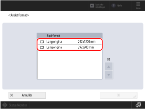 [Andet format] og vælg størrelsen på det ilagte lange ark papir.