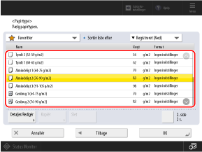 *Hvis den ilagte papirtype ikke vises på listen, skal du registrere papirtypen.