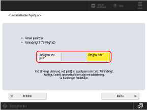 * Hvis du indstiller en bestemt papirtype i printerdriveren, skal du trykke på [Vælg fra liste] og manuelt konfigurere papirtypeindstillingen for maskinen. Brug ikke [Autogenk.ved print].
