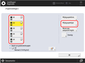 Selecteer de papierlade waarvan u de instelling wilt wijzigen en druk op [Wijzig papiertype].