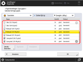 *U kunt ook een papiersoort registreren en instellen die is aangepast aan de kenmerken van het geplaatste papier.