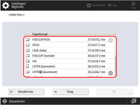 [Niet-herkend std.formaat] om het formaat van het geplaatste papier te selecteren.