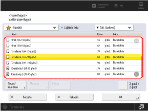 Valitse [Kaikki] näytön vasemman yläkulman avattavasta valikosta ja valitse paperityyppi avautuvasta luettelosta.
