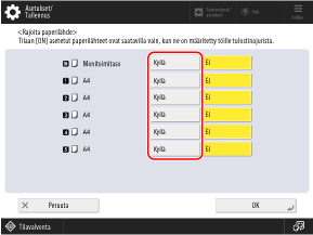 Et voi määrittää kaikkien paperilähteiden asetukseksi [Kyllä].