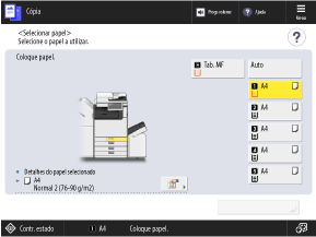 Efetue as operações descritas abaixo de acordo com o papel a ser utilizado e retome a impressão ou cópia.