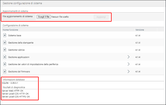 Il nome e la versione delle funzioni aggiunte vengono visualizzati nella pagina [Gestione configurazione di sistema].