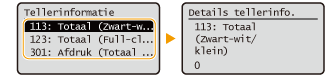 U kunt het totale aantal pagina's dat is afgedrukt controleren. Het aantal afdrukken omvat afdrukken van de geheugenmedia en de lijst en afdrukken van gegevens van computers.