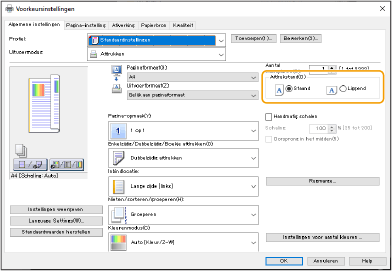2 | Stel in het scherm [Basisinstellingen] van het stuurprogramma [Afdrukstand] in op dezelfde oriëntatie als in stap 1. |