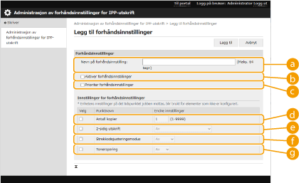 [Administrasjon av forhåndsinnstillinger for IPP-utskrift].