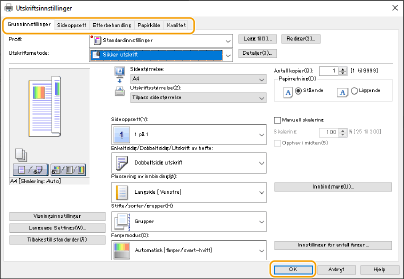 Angi utskriftsinnstillingene etter behov, og klikk på [OK].