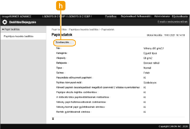Egyedi papírtípusok bejegyzéséhez és a bejegyzett egyedi papírtípusok beállításainak megváltoztatásához rendszergazdaként kell bejelentkezni. Bejelentkezés a készülékre