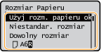 Jeżeli wyświetlany format/typ papieru różni się od formatu/typu załadowanego papieru, wybierz opcję <Ustawienia Papieru> i wybierz źródło załadowanego papieru.