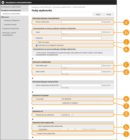 „@” może być dostępna w zależności od ustawienia. Konfiguracja metod logowania użytkowników oraz urządzeń uwierzytelniających