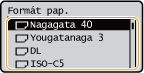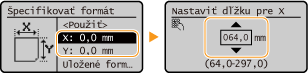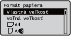 Keď si často používané formáty papiera zaregistrujete pod tlačidlá <S1> až <S5>, môžete ich potom vyvolať výberom položky <Uložené formáty>.Uloženie papiera ľubovoľného formátu (papier vlastného formátu)