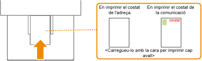 En aquesta secció es descriu la manera com es carreguen les targetes postals amb l'orientació correcta, a més dels procediments que cal seguir abans de carregar les targetes postals. Per obtenir una descripció del procediment general per carregar targetes postals a la safata multiús, consulteu Mètode de càrrega de paper bàsic.