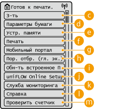 Нажав эту кнопку, можно настроить параметры <Параметры функции>, <Предпочтения> и многие другие параметры аппарата.