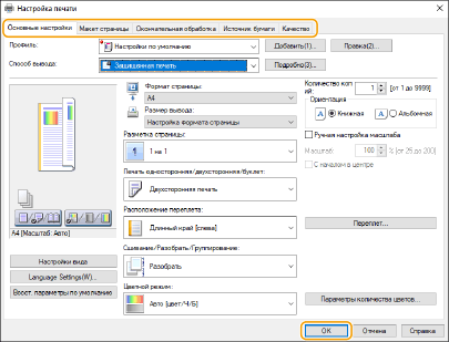 Настройте параметры печати по своему усмотрению и нажмите [ОК].